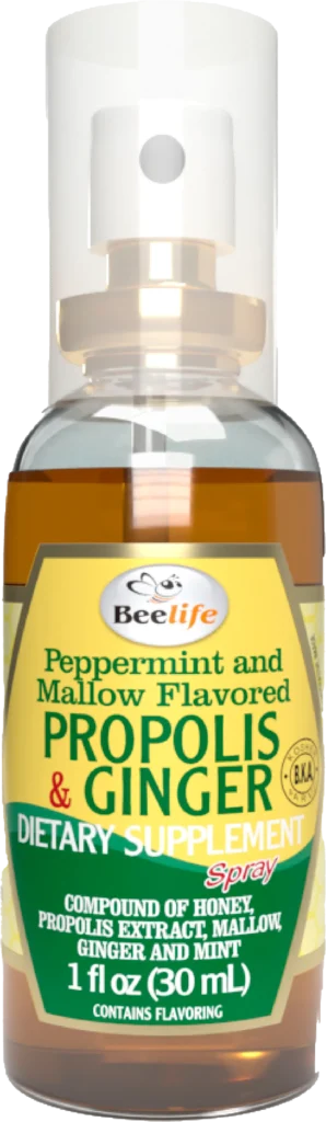 BeeLife Propolis Spray – Honey & Ginger 30 ml pairs soothing honey with warming ginger and Brazilian propolis for rapid, on‑the‑go throat comfort.